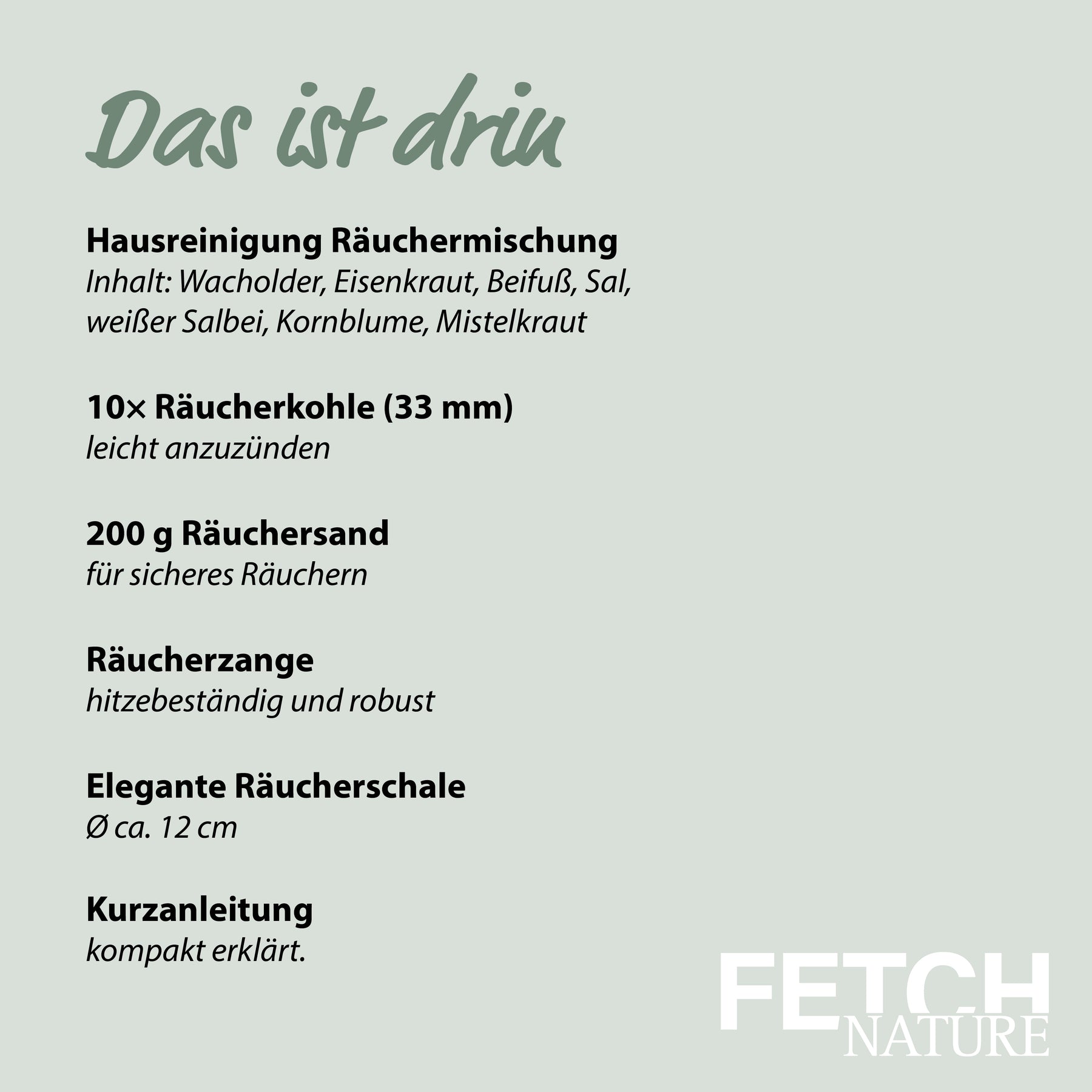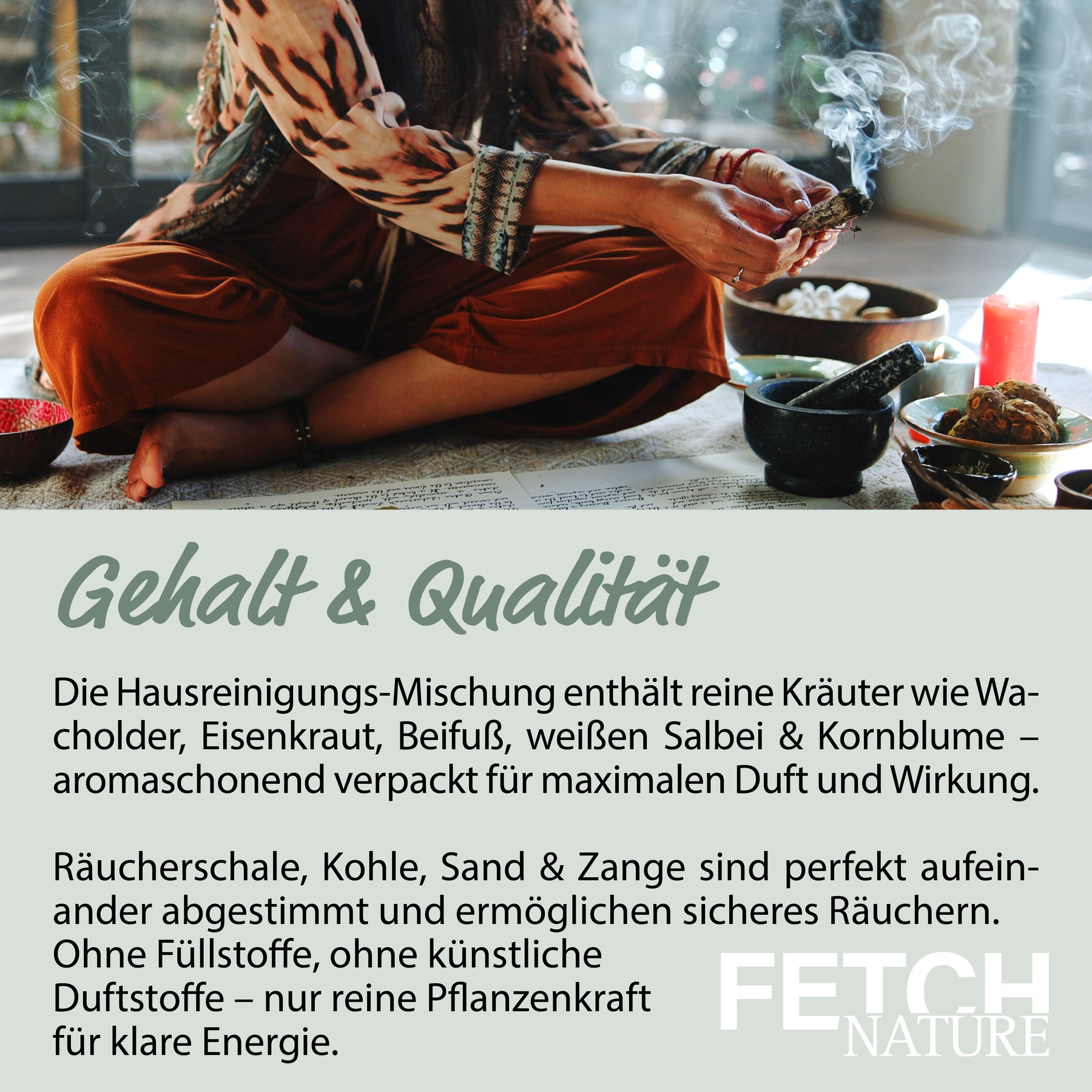 - High-quality incense mixture : 50ml specially composed house cleaning mixture for a harmonious atmosphere (ingredients: juniper, verbena, mugwort, sal, white sage, sage, cornflower, mistletoe) .