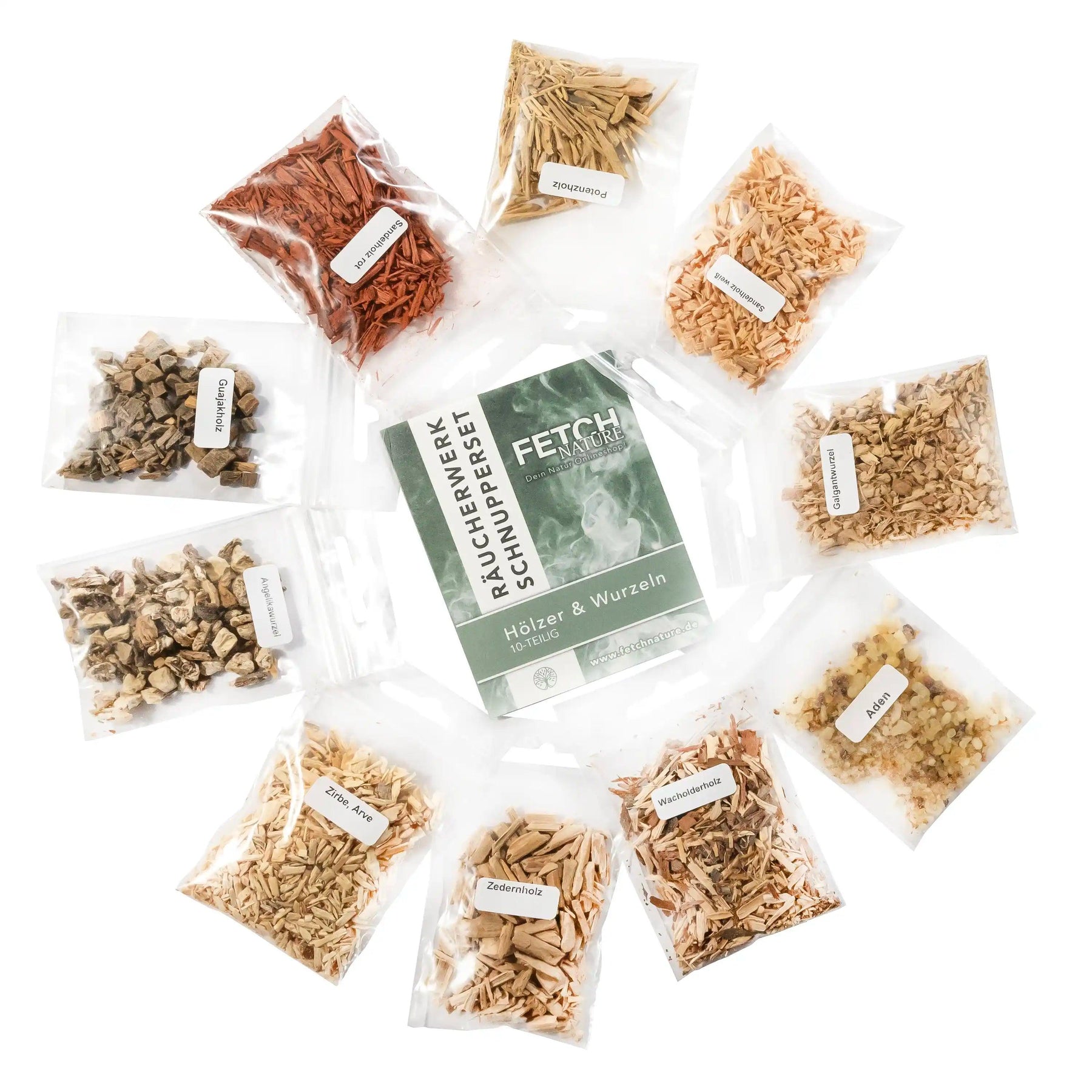 - Enthält 10 verschiedene Räucherhölzer und Wurzeln