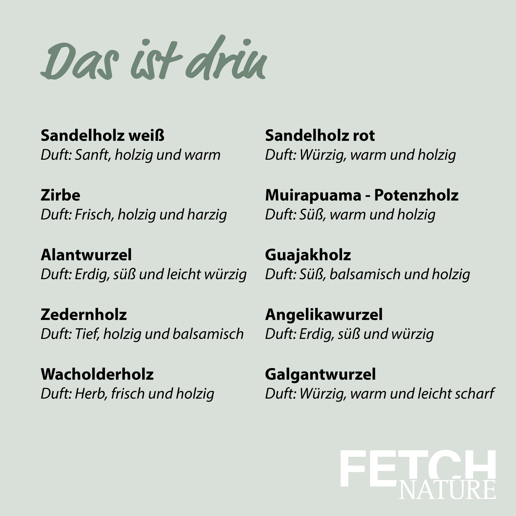 - Duft: Sanft, holzig und warm
